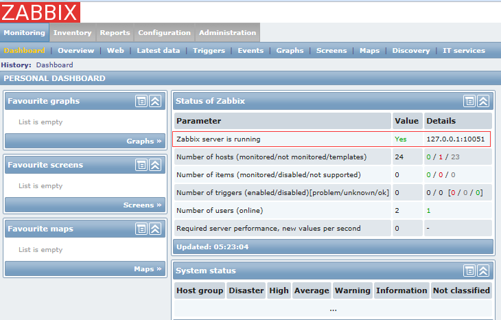 登录界面,用默认的username:admin, password:zabbix登录